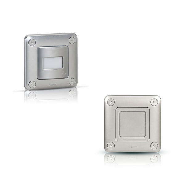 Plexo™ 55 ist auch mit dem Automatisierungssystem with Netatmo erhältlich und es stehen eine vernetzte 16A-Steckdose und ein batteriebetriebener Sender zur Verfügung, um Komfort und Sicherheit auch in Feuchträumen oder im Außenbereich realisieren zu können.